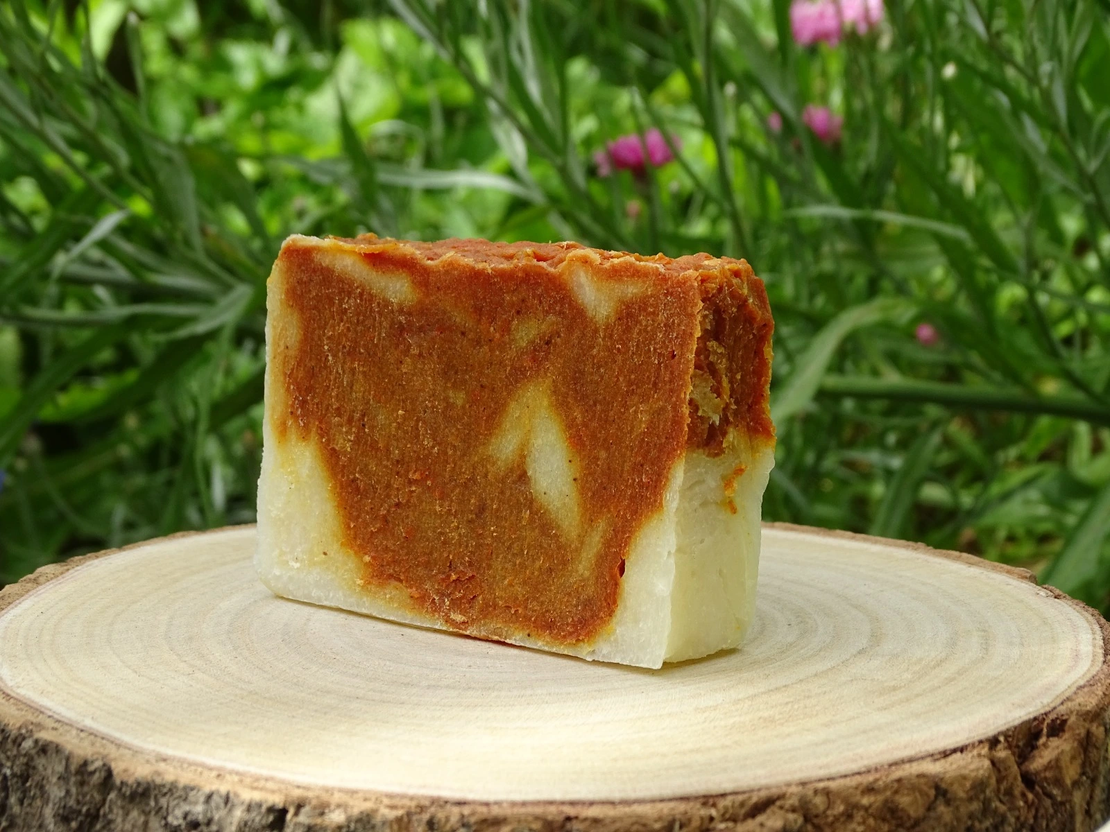 Le zeste est un savon produit en saponification à chaud, surgras à 8% et enrichit avec de l’huile d’amande douce, du lait d’avoine, du yaourt grec et de l’argile rouge. Cette dernière lui donnera une coloration rappelant la chair d’un agrume sanguin et sa senteur vous conduira sur les sentiers des champs d’agrume méditerranéens.