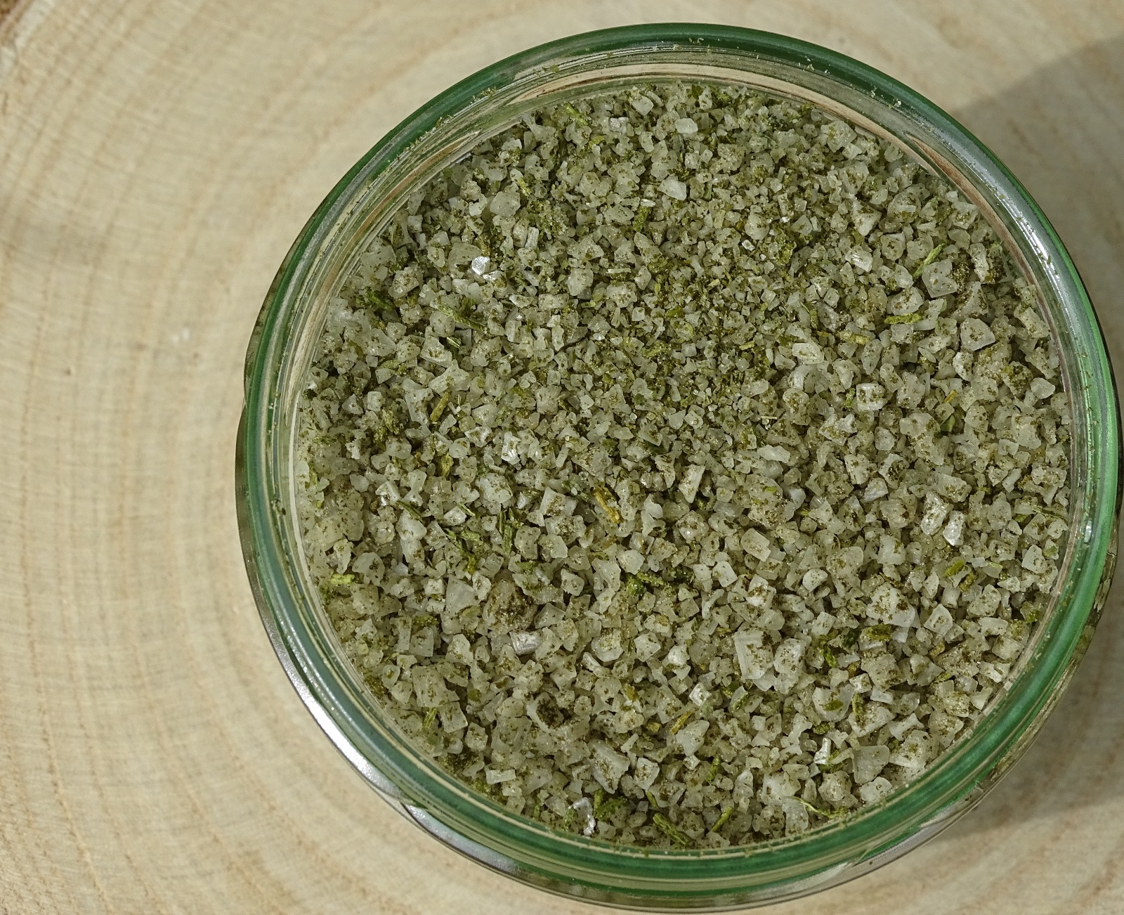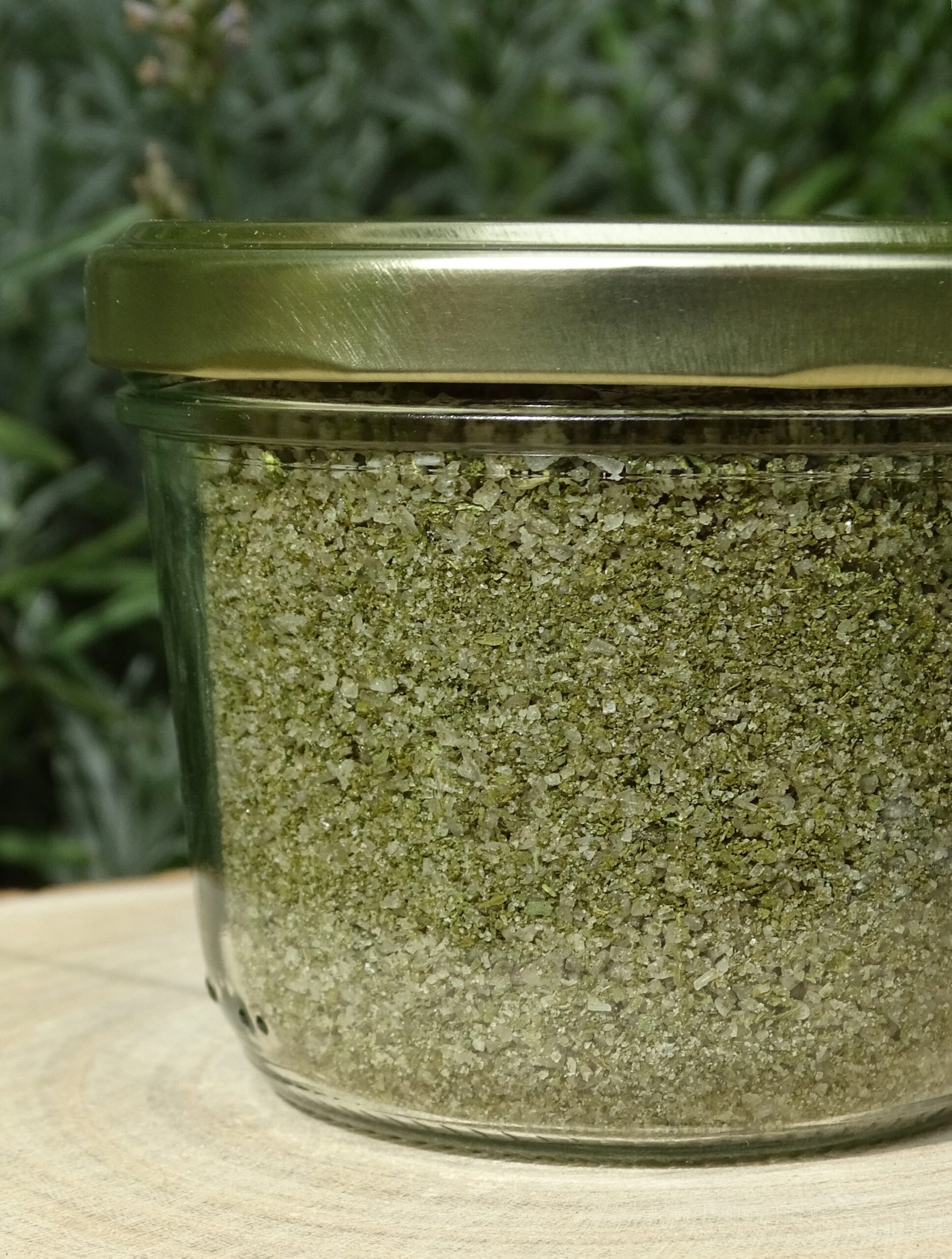 Avis aux amateurs d’ail : L’essence de notre cher ail des ours a été saisie au sein de ce sel et il sera difficile de vous en passer après y avoir goûté.